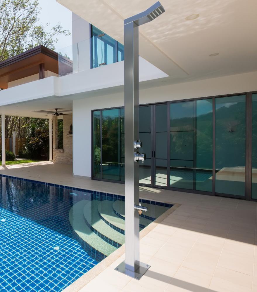 Bondi Silver 316L Marine Grade Stainless Steel Outdoor Pool Shower, Hot & Cold Mixer Included