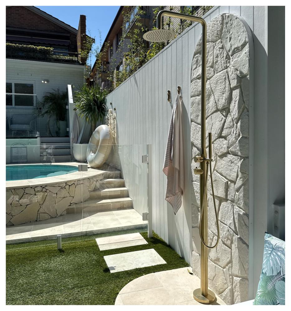 | Features | 100% 316L marine-grade stainless steel construction (entire shower) Brushed gold finish for a modern, architectural look Hand-held shower wand for flexible, convenient rinsing Large rainfall shower head for full-body coverage Hot & cold mixer compatibility Freestanding design for pools, gardens & outdoor bathrooms Ideal for coastal, saltwater & high-humidity environments Designed for Australian homes and resorts |
