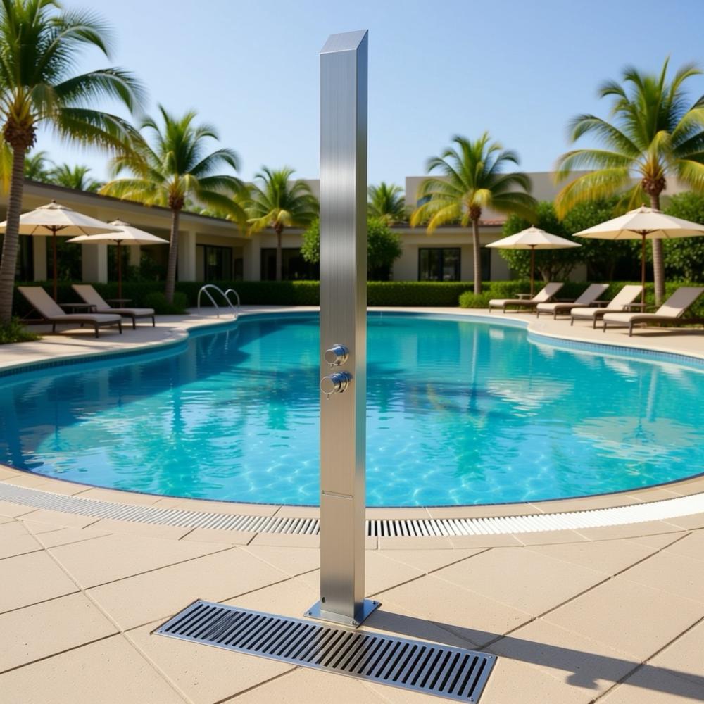 Equipped with a hot & cold mixer valve, it delivers perfectly tempered water for every rinse — whether cooling off after a swim or washing away sand from a day at the beach.